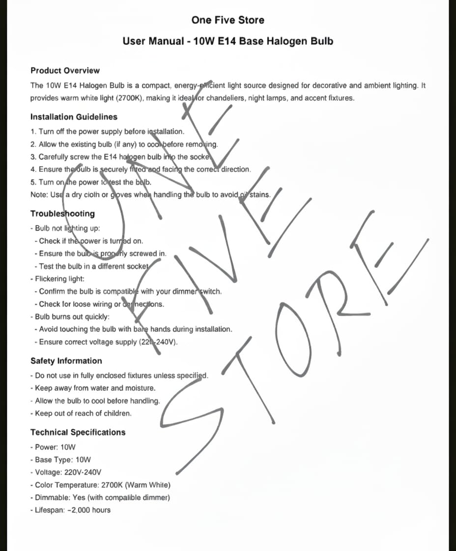High-Performance Halogen Bulb (E14 Base) – This 15W refrigerator halogen bulb provides optimal illumination with a warm white light at 2700K, making it ideal for small appliances such as fridges, ovens, and sewing machines. The E14 small screw base ensures a snug fit and quick installation without special tools or adapters. Durable and Heat Resistant Construction – Engineered with premium quality materials, the bulb is resistant to high temperatures, making it a dependable choice for high-heat environments like ovens and microwaves. Its robust glass construction ensures durability for long-term usage without premature burnout. Energy Efficient & Eco-Friendly – Consume only 15 watts of energy while providing excellent brightness, this halogen bulb is an energy-conscious alternative to traditional incandescent bulbs. Enjoy powerful light output with reduced power consumption and minimal environmental impact. Wide Compatibility & Multi-Purpose Use – Ideal replacement for many appliance brands, this bulb fits a wide range of refrigerators, freezers, ovens, range hoods, sewing machines, and more. Perfect for residential kitchens, RVs, hotels, and workstations. Value Pack of 1 Long Lifespan – Comes in a convenient pack of 1 bulbs, giving you a backup for future replacements. Each bulb offers an extended lifespan of up to 2,000 hours, reducing the need for frequent replacements and saving you time and money.