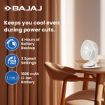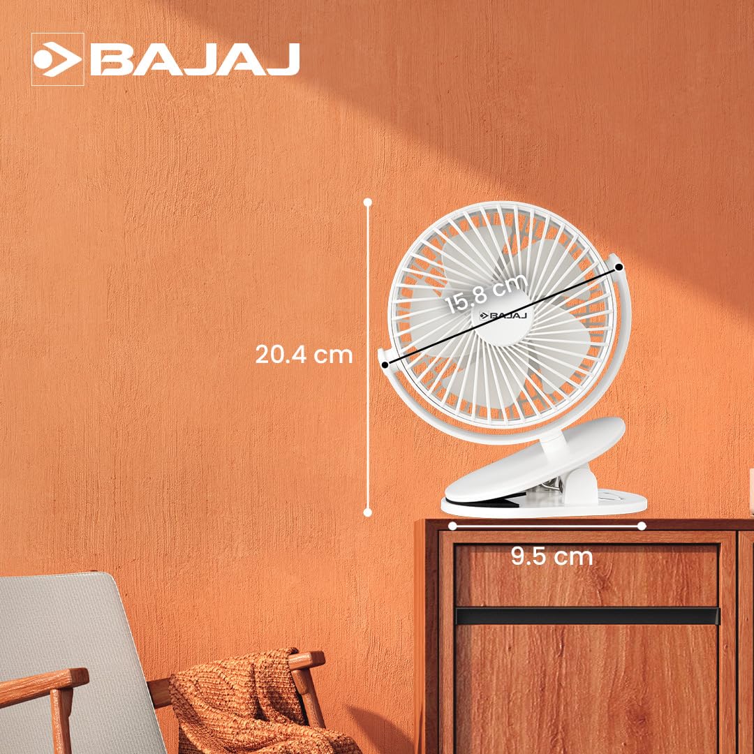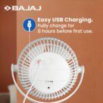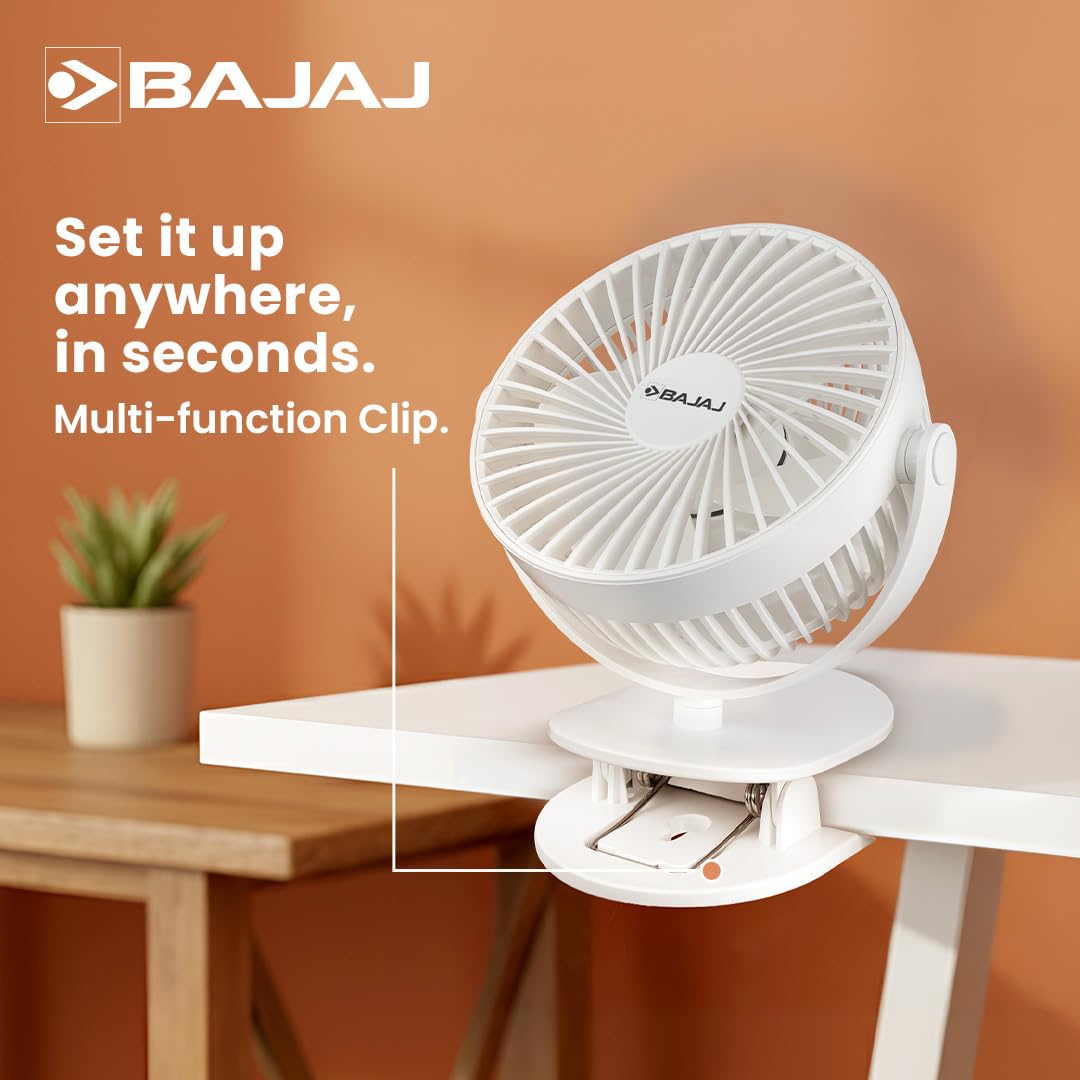 Bajaj Pygmy Mini Fan 110mm | USB Charging Fan | Multi-Clip Function| Rechargeable Fan| Battery Fan| 4-Hr Back-up| Silent Operation| Longer Battery Life| Energy Efficient| Portable Fan| White Table Fan