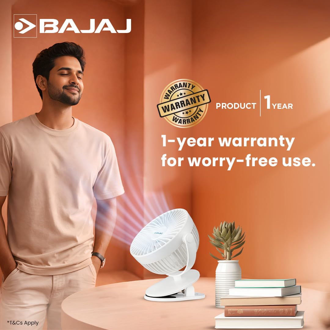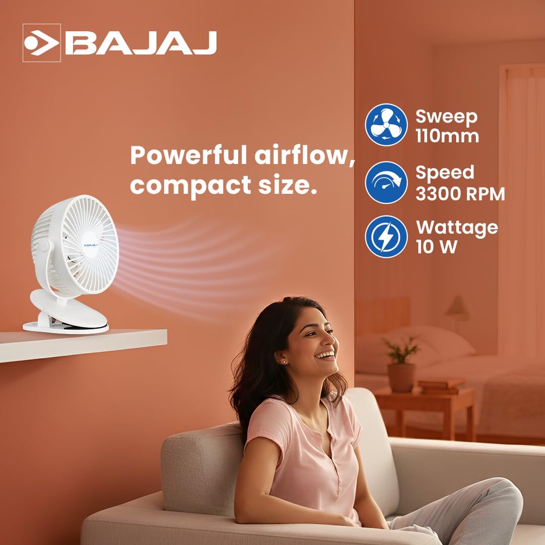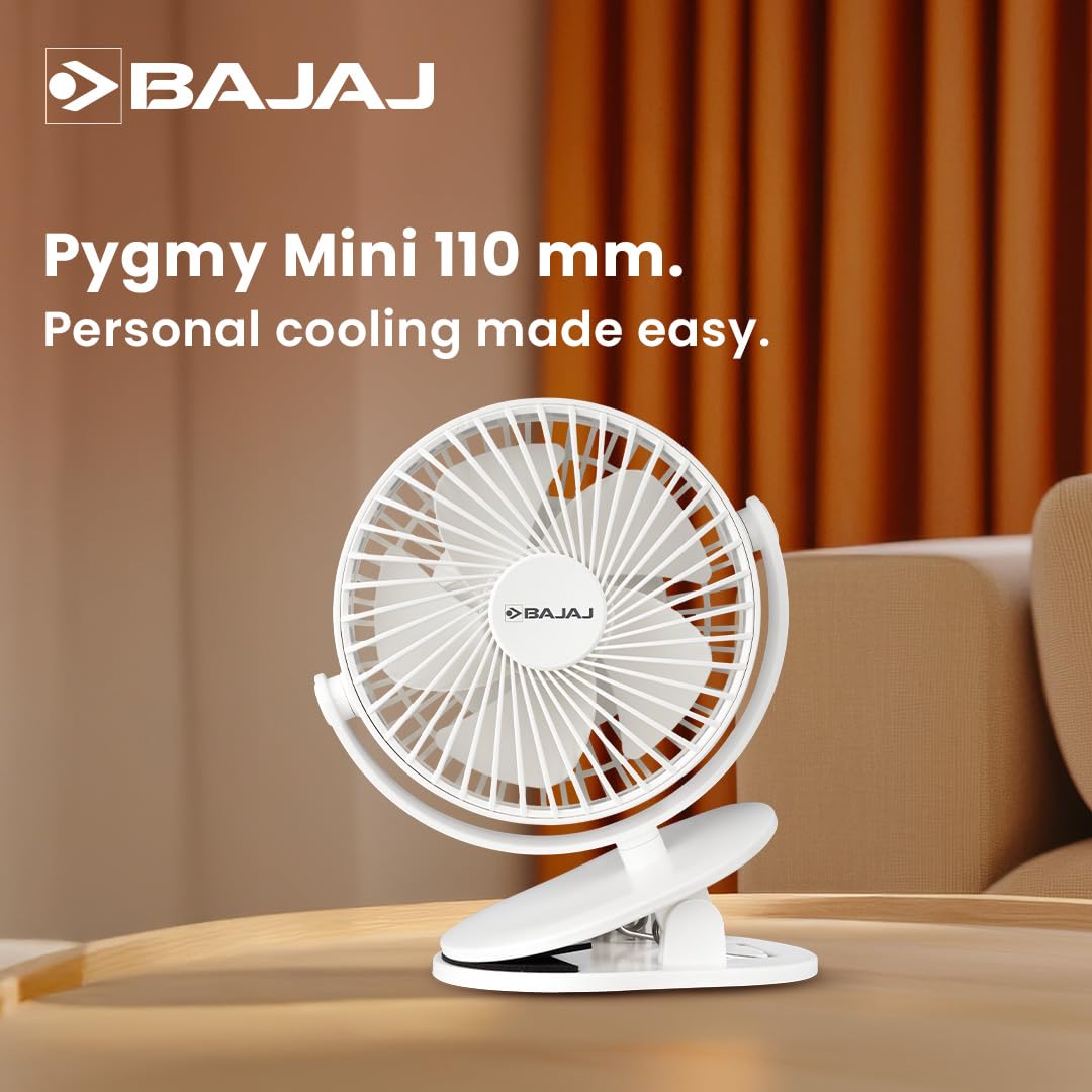 8 reviews for Bajaj Pygmy Mini Fan 110MM | USB Charging | Multi-Clip Function | Rechargeable | 4-Hr Back-up | Silent Operation | Longer Battery Life | Energy Efficient | Portable【White】