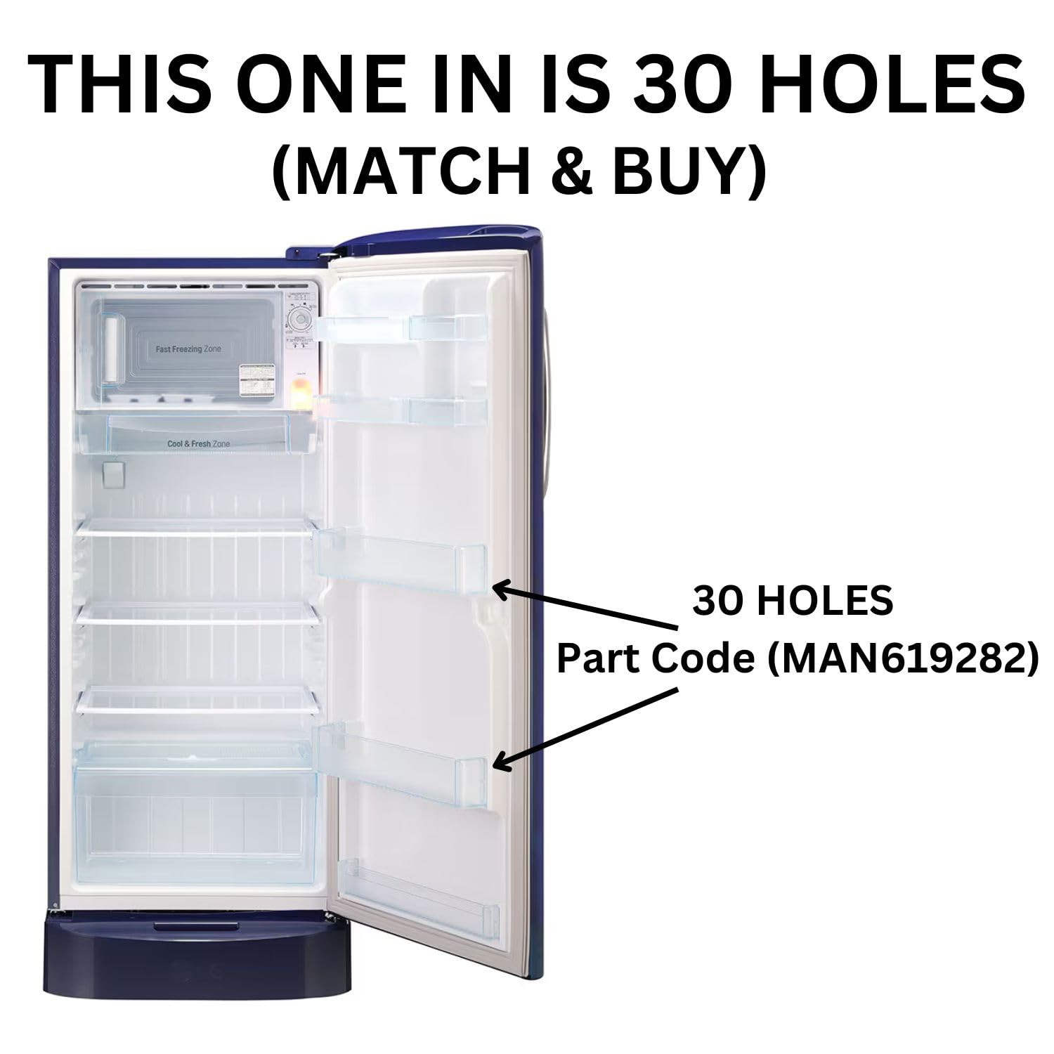 Kindly match the part code before purchase. This bottle rack fits only specific LG Single Door Refrigerator models. If the part code does not match, the shelf will not fit correctly. Please match and buy to ensure compatibility.