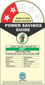 Energy Rating : 2 Star Energy Efficiency | Annual Energy Consumption : 197 Kilowatt Hours Per Year