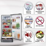 Key Features: Smart Connect – helps you connect your refrigerator to home inverter in case of power cuts; Solar Connect – allows the refrigerator to be powered by a home inverter during power outages | Door Basket No (Full Size / Half Size) – 2+3; Lock – ensuring safety, especially for households with children or pets; Handle Type – Bar; Anti Rat Bite (Sleeve)