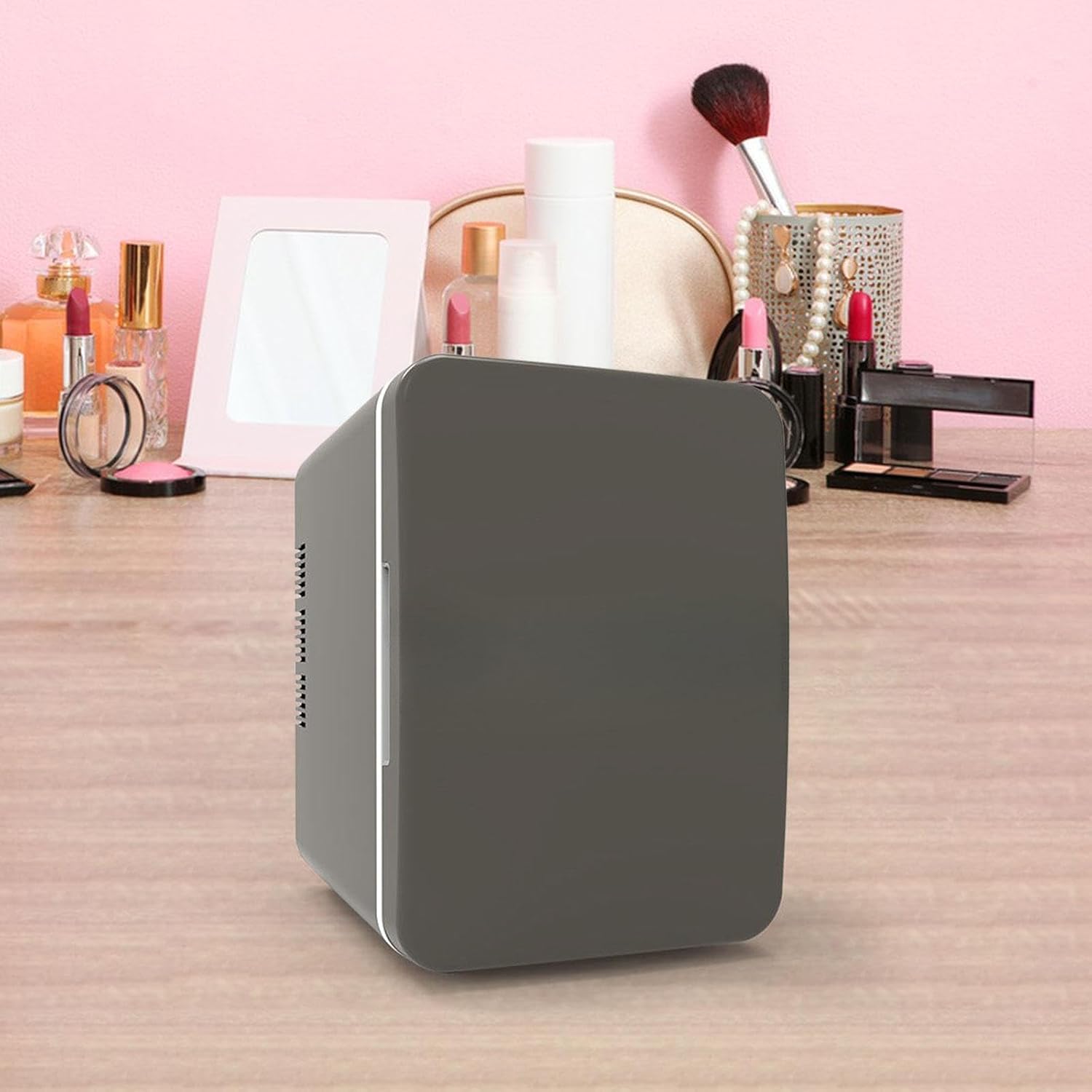 Save Space : Mini fridge has 4 Liter capacity, compact size, 17.4cmx24.3cmx24.5cm/6.85inchx9.57inchx9.65inch, for small places use.
