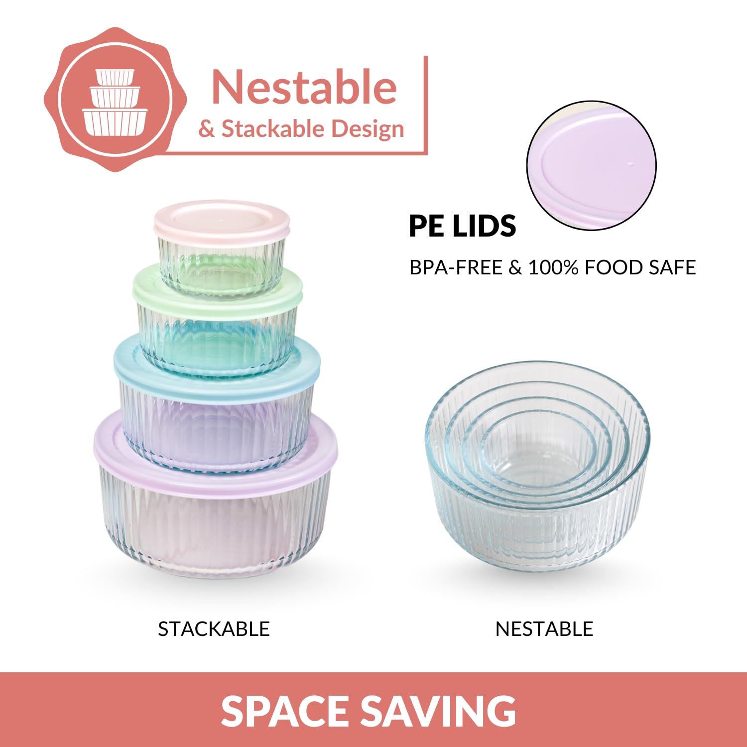Secure PE Lids: Provides a tight seal to keep food fresh and prevent spills; BPA-free for safe storage.