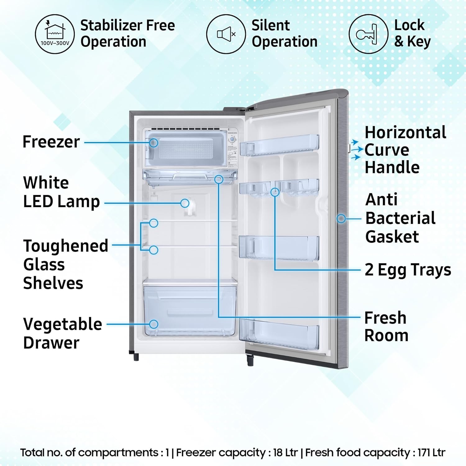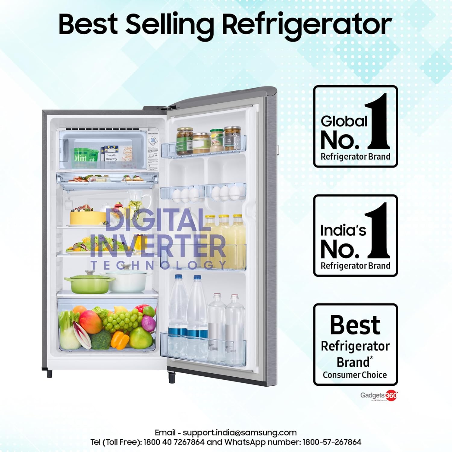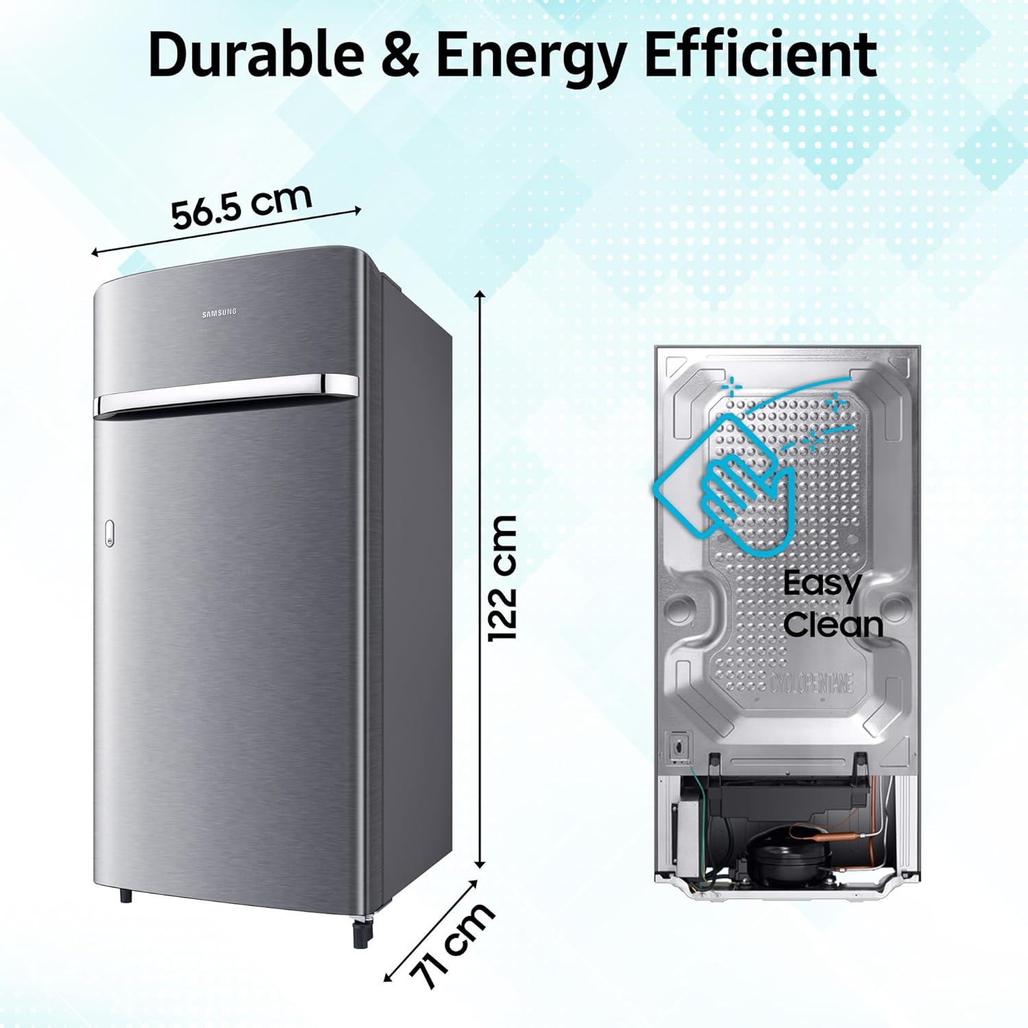Samsung 189 L, 4 Star, Digital Inverter, Direct-Cool Single Door Refrigerator (RR21H2G24S8/HL, Silver, Elegant Inox, Single Touch Defrost, 2026 Model)