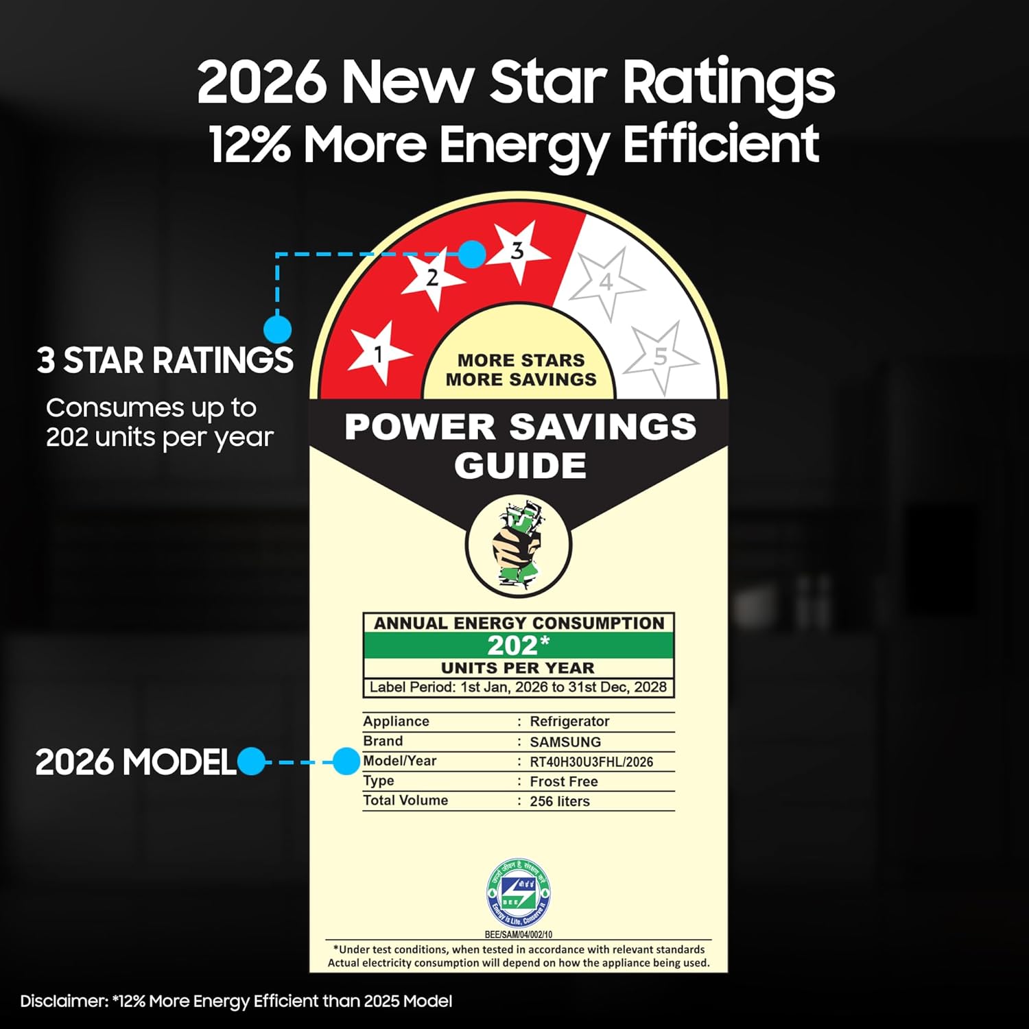 Energy Rating : 3 Star Energy Efficiency | Annual Energy Consumption : 202 Kilowatt Hours Per Year