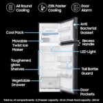 Additional Features : Stabilizer Free Operation (100v – 300v) | Multi Flow | Up to 15 Days of Fresh Food | Recess Handle | Veg Box | Big Bottle Guard (Deep Door Guard) | LED Light