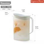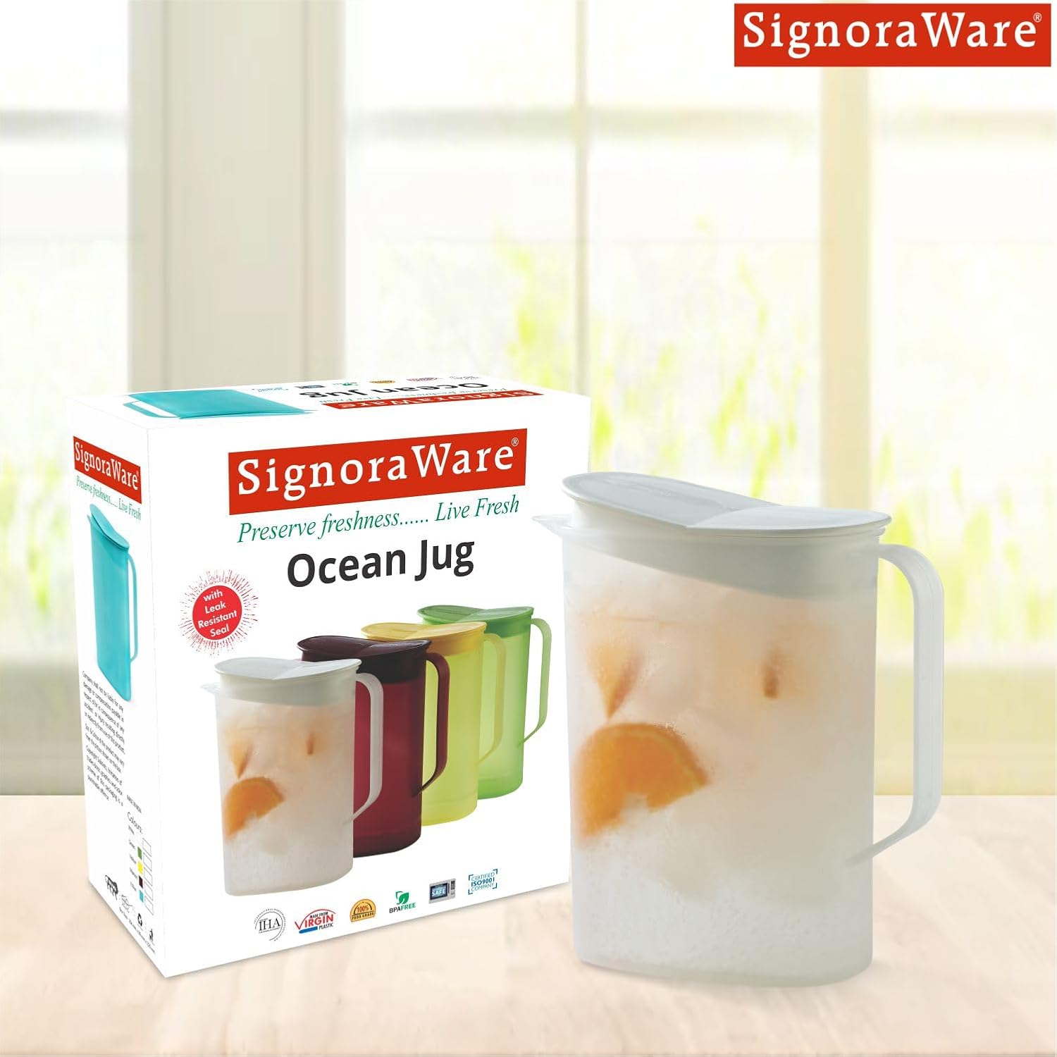 Material Details: Dimention: 20cm x 9.5cm x 21.5cm | Capacity: 1.65ltr | Signoraware Ocean jug made from high-quality, BPA-free Plastic material which ensures it is safe for storing food and drinks.