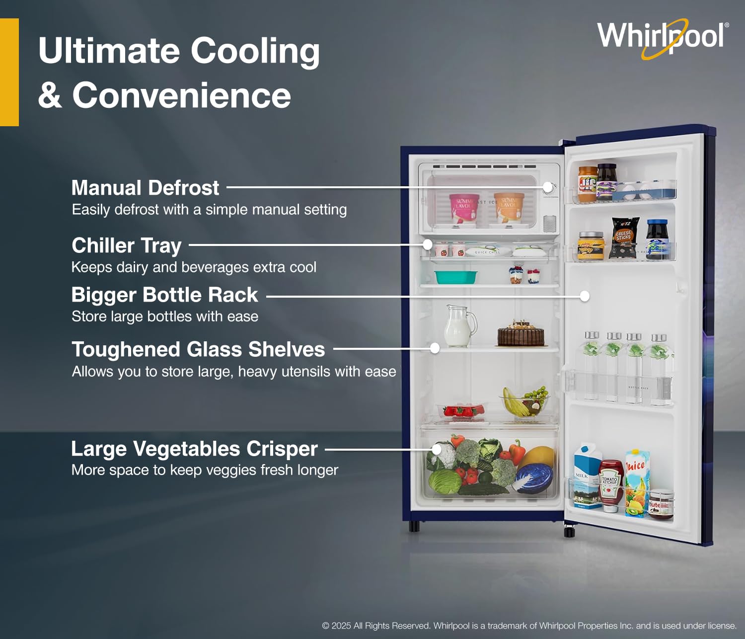 Whirlpool 184 L 2 Star Direct-Cool Single Door Refrigerator (205 WDE CLS 2S SAPPHIRE BLUE-Y, Blue, 2026 Model)