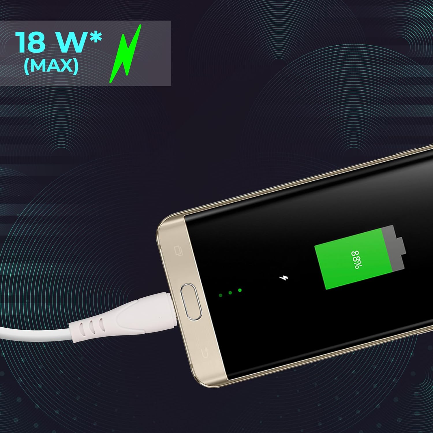 The cable can support fast charging of 18W max. (up to 2.4 Amps) along with its stretch and stress-resistant properties.